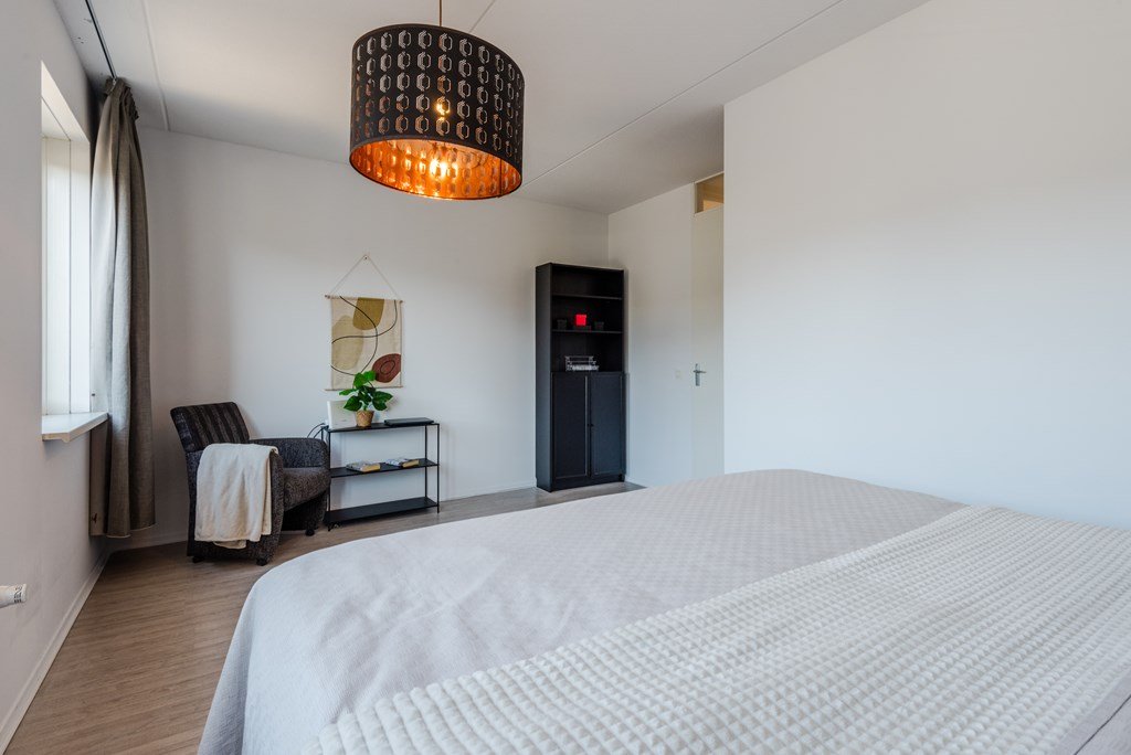 De hoofdslaapkamer aan de achterzijde beschikt over een scheidingswand met inloopkast en biedt de mogelijkheid om eenvoudig een extra slaapkamer of werkkamer te creëren.