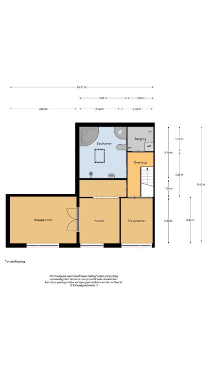 Vanaf de overloop zijn bijna alle ruimtes op deze verdieping te bereiken. Er is een royale wasruimte er zijn drie zeer ruime slaapkamers.