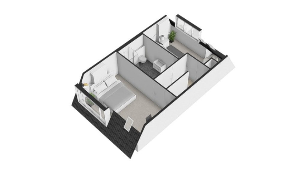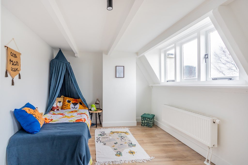 Hier bevinden zich 2 ruime slaapkamers, waarvan de slaapkamer aan de voorkant een extra dakraam heeft.